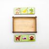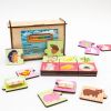 - Ребенку нужно найти и соединить нужные детали пазла, тройной (животное - еда - жилище). Покажите малышу как правильно соединять элементы между собой с помощью креплений-пазлов.