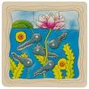 Первый, самый нижний слой-картинка-пазл изображает юных головастиков в пруду, он состоит из 9 частей.