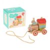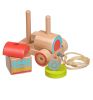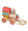 Все детали выполнены из бука. Фигурки и колесики покрыты краской на водной основе. Все деревянные детали гладкие, тщательно отшлифованы. Основа игрушки неразборная. Колесики закреплены на металлические шурупы, такая каталка прослужит долго. Шляпки шурупов утоплены глубоко, ребенок не сможет о них пораниться.
