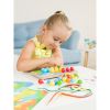 Задача малыша - продеть шнуры с разноцветными шариками в отверстия на картинке, чтобы получилось соответствие по цвету. Это очень увлекательное занятие! Поначалу оно может показаться сложным, но дети гораздо сообразительнее, чем мы думаем. Просто потренируйтесь вместе с ребенком, и вскоре он будет замечательно справляться сам.