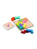 В наборе ребёнок найдет несколько красочных деревянных деталей разных форм и размеров, а также 30 карточек с заданиями разной степени сложности. На каждой карточке указан уровень сложности и исходное положение некоторых деталей.