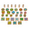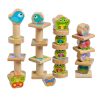 Цель ребенка - построить на платформах башенки из разных деревянных элементов. Детали самые разные - деревянные квадраты, брусочки, круги, а также фигурки птиц, бабочек, лягушек. Всё это можно выстроить друг на дружке в произвольном порядке, главное - чтобы держалось и не падало!