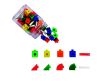 Набор включает в себя 80 элементов: 32 кубика, 16 квадратов, 12 треугольников и 20 стержней.