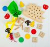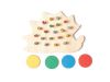 2. Игра «Собери колючки». Ёжик потерял в лесу все свои колючки. Попросите малыша помочь ёжику, вставив иголки в отверстия на спинке. Такая игра будет способствовать развитию мелкой моторики и координации движений рук. Подходит для самых маленьких детей. Детям постарше предложите разложить колючки по цветам или по количеству, используя соответствующие цветные круглые фишки или квадратные фишки с цифрами.