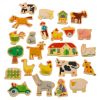 В состав набора входит 24 деревянных магнитных элемента в виде фигурок фермера, коровы, козы, лошадки, петуха и многих других.