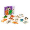 Игра представляет собой деревянные фигурки на магнитах, разделенные на две части. С помощью 24 деталей можно собрать 12 различных животных или создать на свой вкус забавное несуществующее животное.