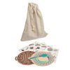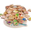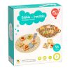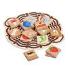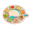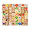 В комплекте идут "тарелочка" и "корзинка" из дерева, а также 56 квадратов с нарисованными на них предметами. Необходимо разложить их по местам - съедобное в тарелку, несъедобное в корзинку. Отличное развивающее занятие для 3 лет и старше.