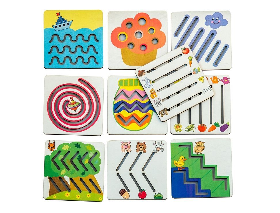 - Водите карандашом или ручкой по линиям и помогайте: "Кораблику проплыть море", "Сове и утенку спуститься по лесенке", "Знакомым животным добраться до своей любимой еды" и т.д.
